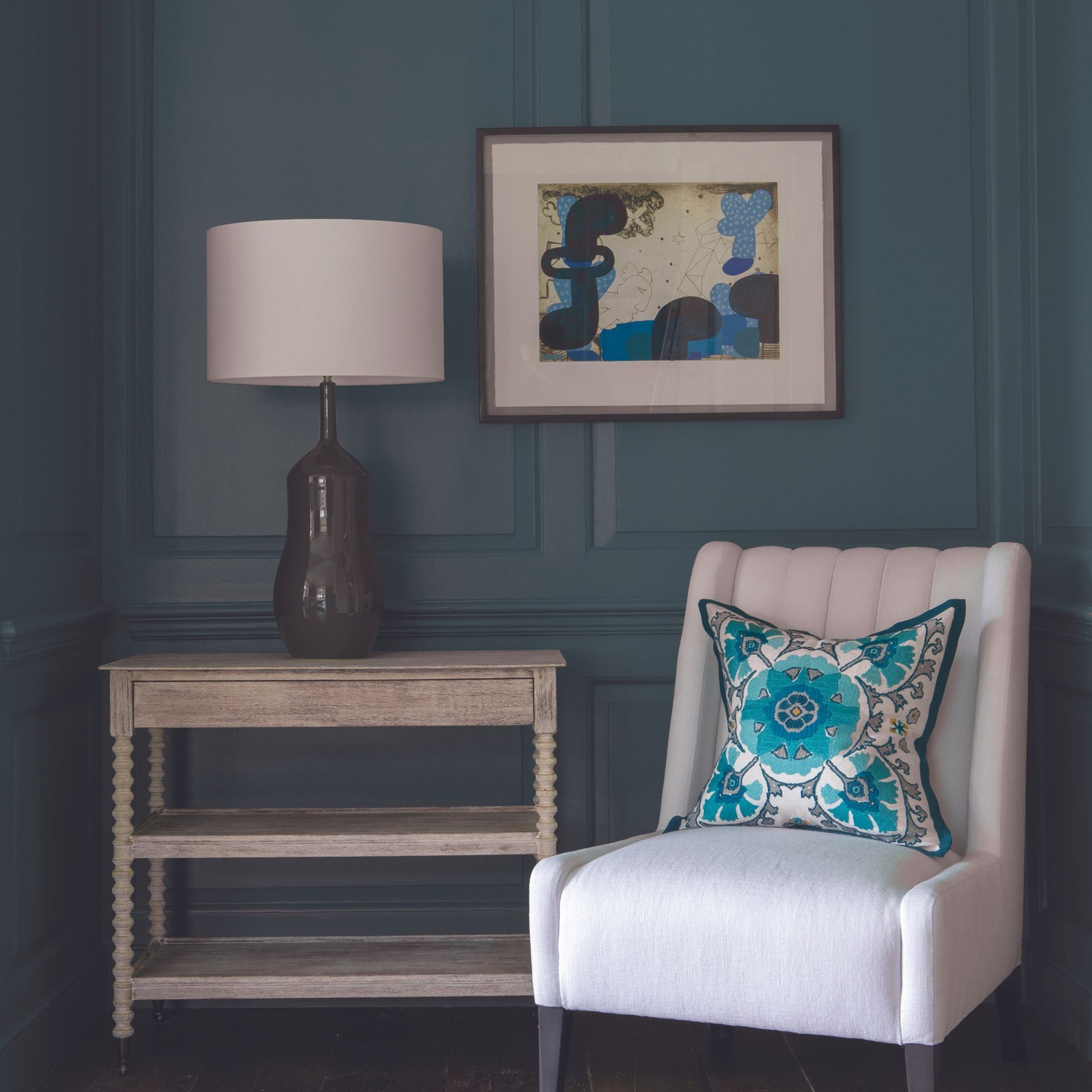Inspired by the colour of the jade stones in a vintage bracelet we found. A soft subdued colour that works wonderfully in the home.
